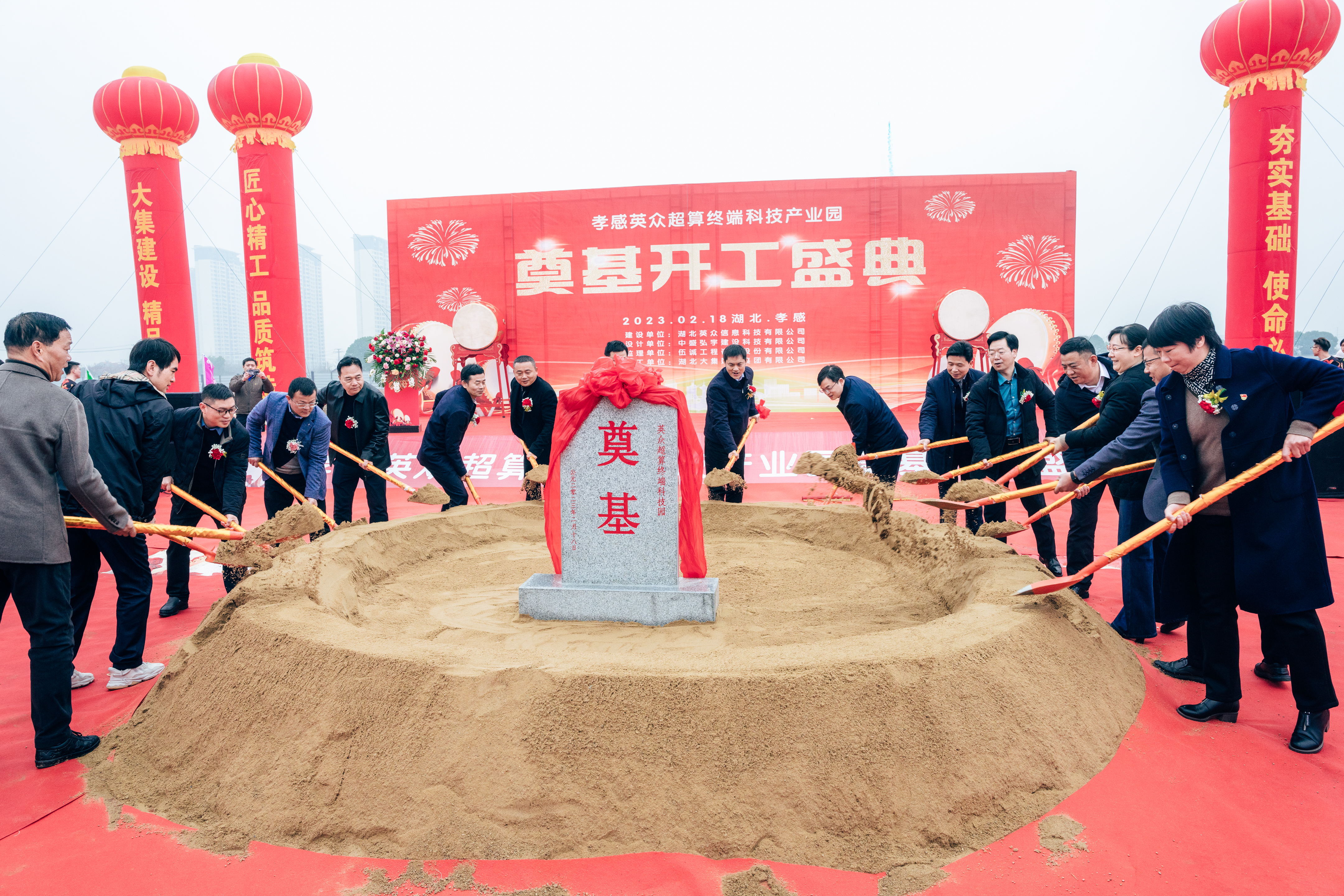 2月18日上午,由湖北大集建設(shè)集團(tuán)總承包的英眾超算終端科技產(chǎn)業(yè)園生產(chǎn)項目開工儀式隆重舉行,孝感市委常委、統(tǒng)戰(zhàn)部部長、高新區(qū)黨工委書記賀衛(wèi)東,高新區(qū)黨工委副書記、管委會主任舒俊,市委統(tǒng)戰(zhàn)部常務(wù)副部長盛夏,高新區(qū)黨工委委員、紀(jì)檢監(jiān)察工委書記張文平等政府領(lǐng)導(dǎo),上海英眾信息科技有限公司兼湖北英眾信息科技有限公司總經(jīng)理劉純堅,上海英眾信息科技有限公司董事會秘書、副總經(jīng)理孫峰,湖北銘洛科技有限公司董事長阮洋,以及集團(tuán)公司董事長徐濤、總經(jīng)理徐遠(yuǎn)征、董事許江、副總經(jīng)理徐家富出席參加了奠基儀式。