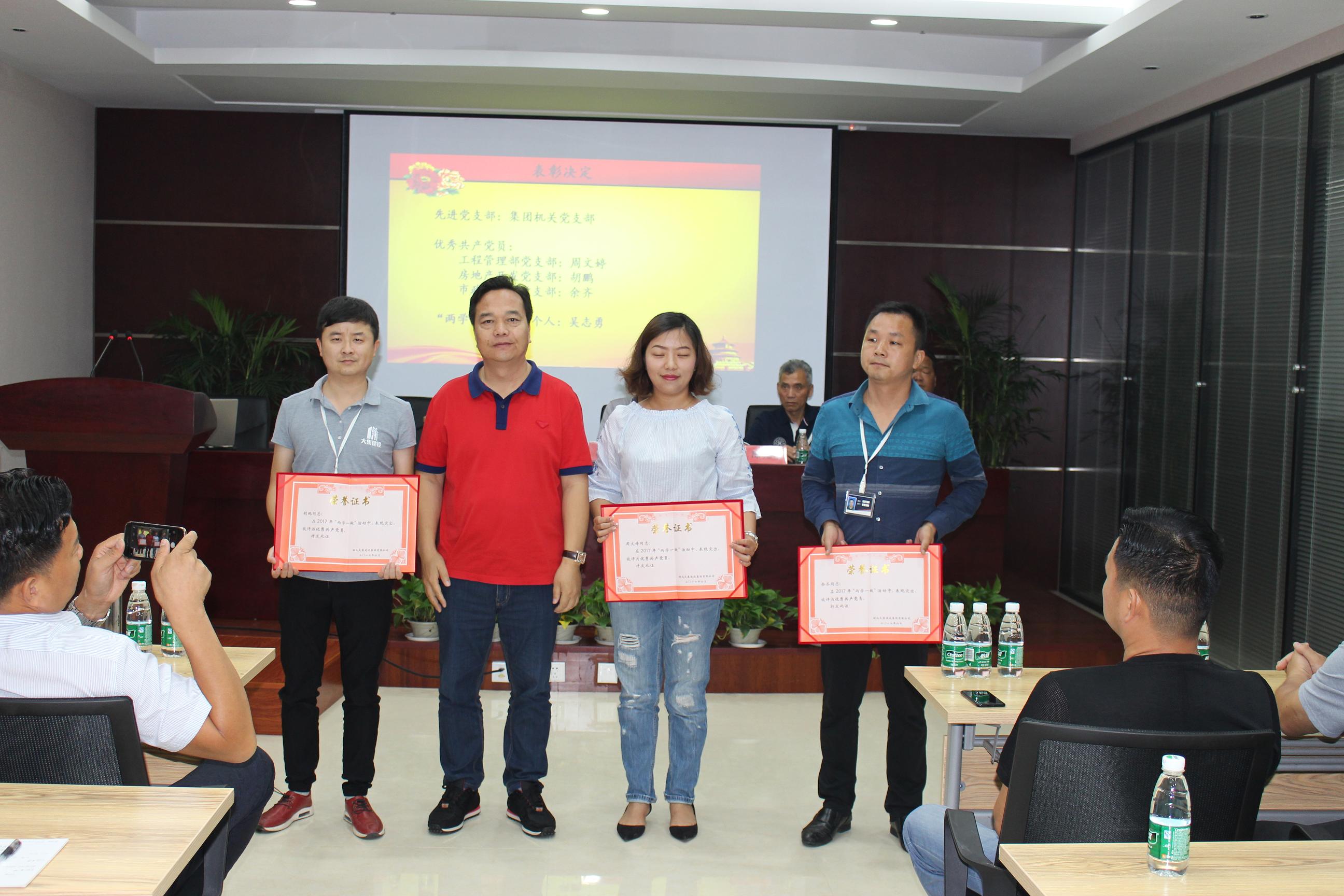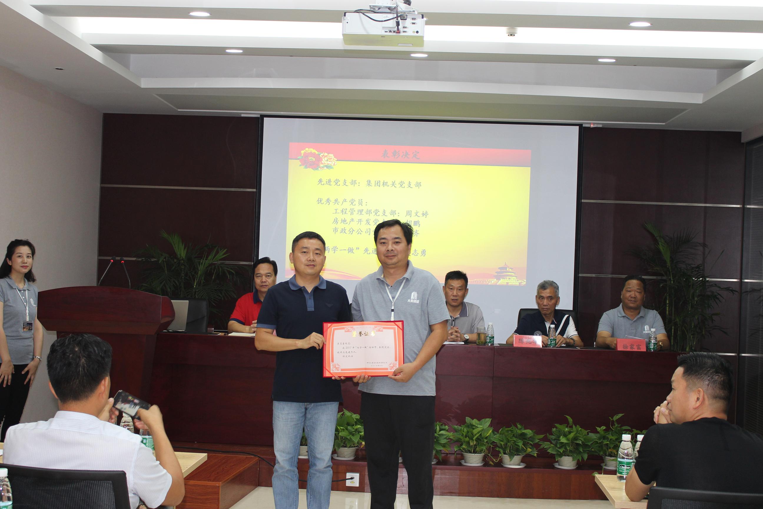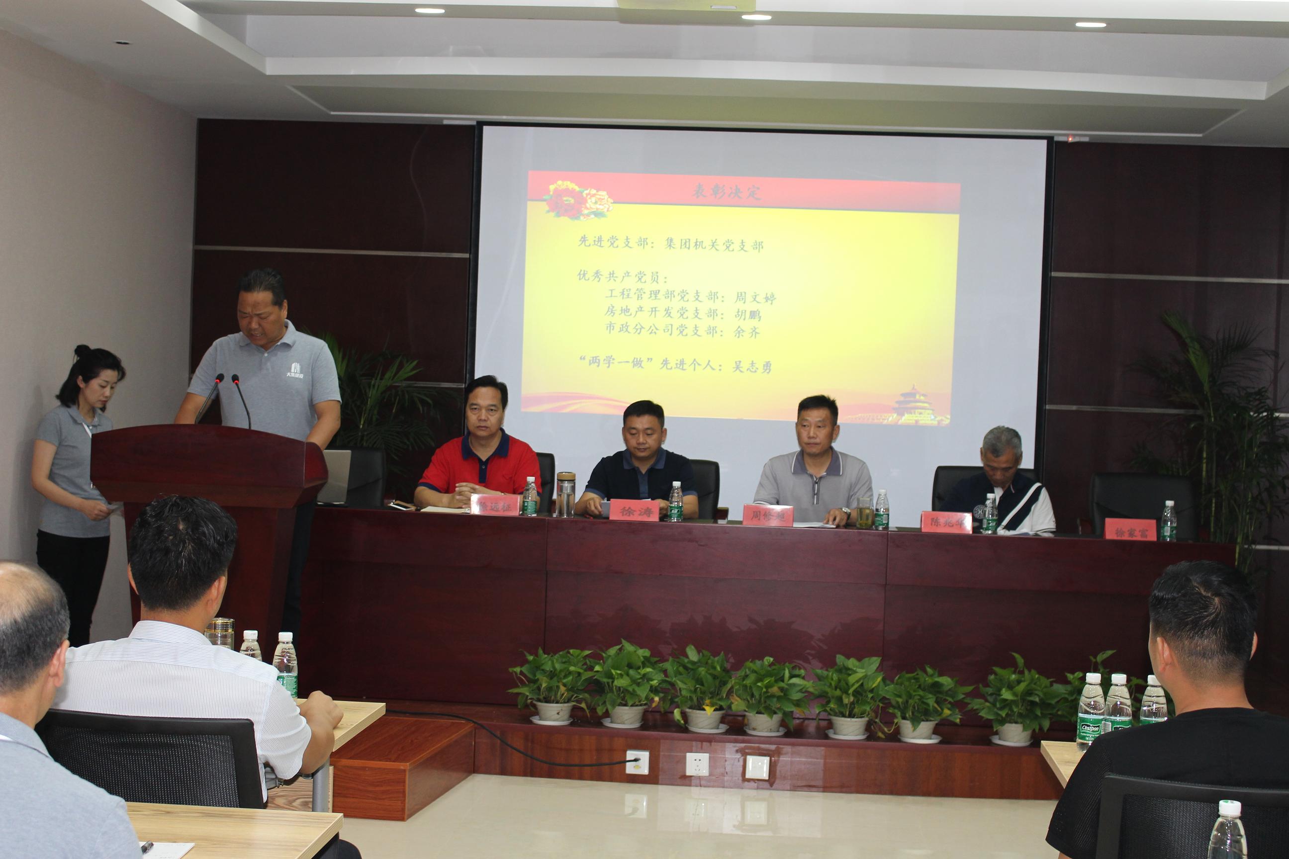 接著,由工程管理部黨支部書記徐家富同志宣讀中共湖北大集建設(shè)集團有限公司黨委《關(guān)于集團公司黨委和支部人員組成的決定》及《關(guān)于表彰先進(jìn)黨支部、優(yōu)秀黨員的決定》。