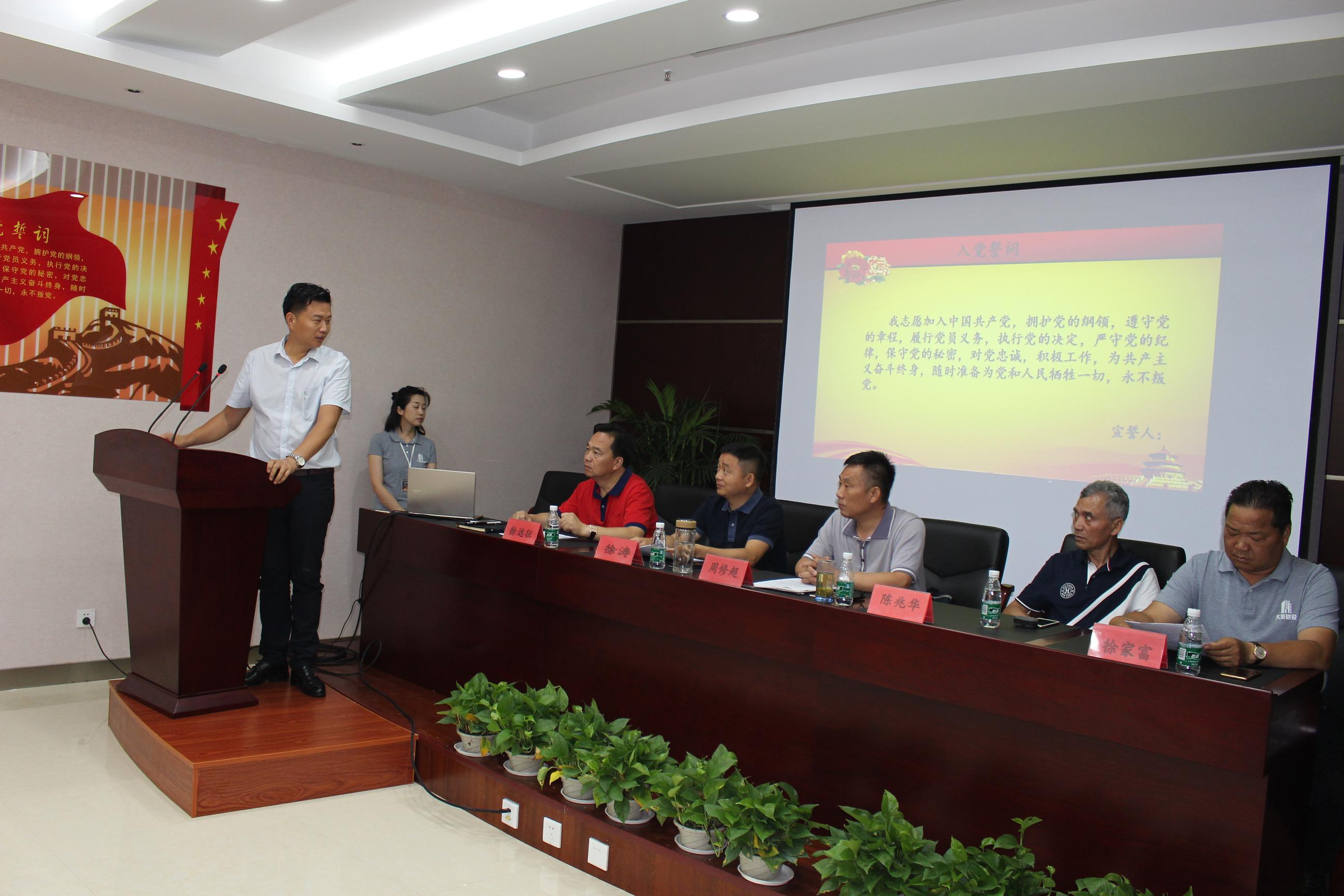 接下來,轉(zhuǎn)正黨員賀凡、預(yù)備黨員劉杰做了誠實誠懇的思想?yún)R報,世貿(mào)項目部項目經(jīng)理周勝書做了斗志昂揚的工作匯報。