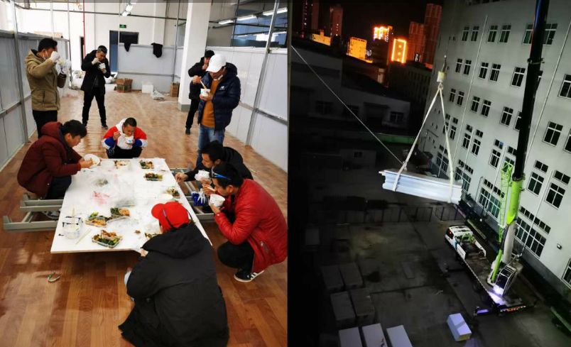 張笠說,方艙建設期間他學到了很多,更是看到了兩個人,一個是董事長,所有細節(jié)親力親為,現(xiàn)場作業(yè)面一天總要轉(zhuǎn)好幾遍,他都親自動手搬運,積極主動帶領大家一路向前,吃飯時也與大家一起因陋就簡,席地而坐,把奉獻精神做到了極致;另一個是周勝書周總,他的責任感值得大家學習,在最累的時候,大家還會歇一下,可周總總是一個人沖在前面,最早一個來,最后一個走,包括材料組織,購買,搬運,所有人的生活,現(xiàn)場的衛(wèi)生,所有收尾工作等等,所有的細節(jié)都考慮的十分全面,周總是真的把責任感做到極致的人!同時,他也很感激團隊中每一個人,因為工人業(yè)務不熟練,很多材料又難以采買,團隊中負責采購的周鋒要跑遍很多市場才能采購到足夠的材料,真的非常辛苦,但好在最終,所有人的積極配合和共同努力讓任務得以圓滿完成,他說,那一刻他自己都不敢相信,真的只剩下激動!所以這場方艙建設,對他來說收獲更多,因為這場經(jīng)歷他有了更多的責任感和奉獻精神,也親眼見證了團結(jié)的力量!