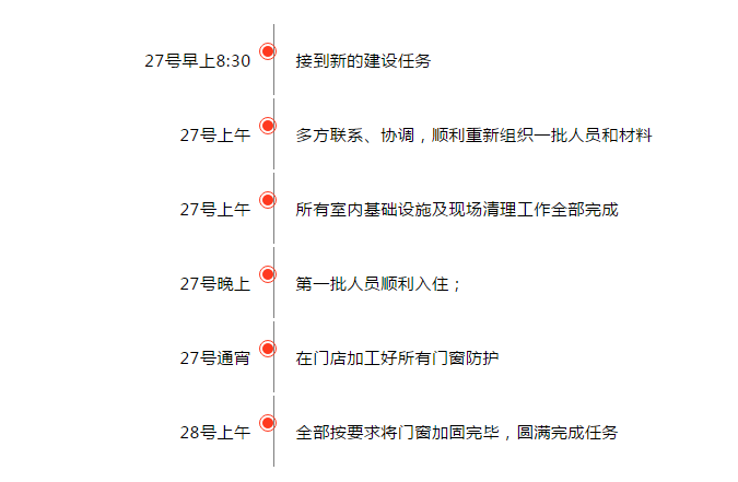 2月27日早上8:30,經(jīng)過一天一夜的奮戰(zhàn),王總帶領(lǐng)的項目團隊順利交付施工任務(wù),獲得業(yè)主單位的高度贊揚,當(dāng)即授予我們第二批改造任務(wù)——方艙內(nèi)部床位布展及門窗加固工作。